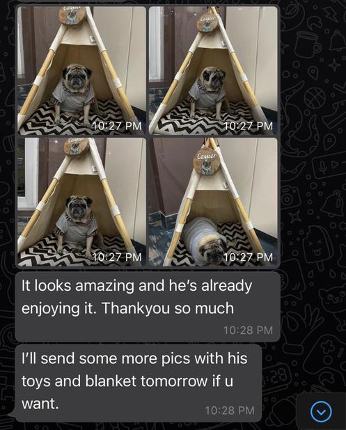 The tent worked beautifully through all the rains and hail! Many of his friends from Dehradun started requesting him to make one for their dogs but Jai never got the time.