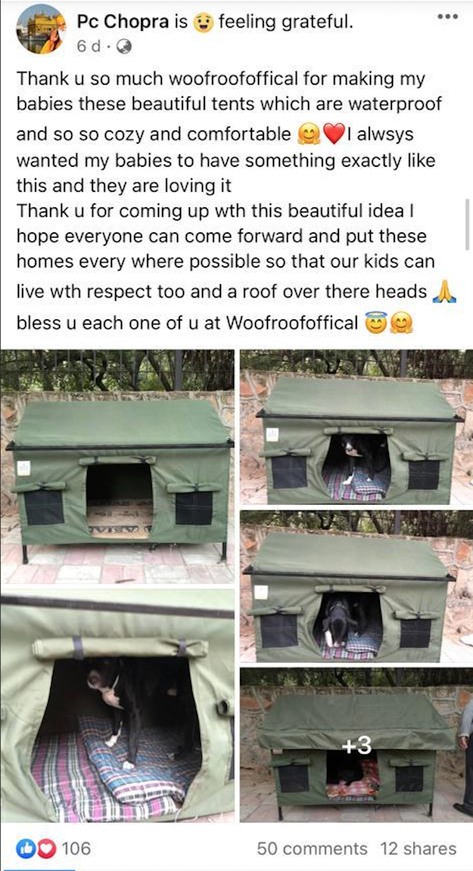 As Covid hit in 2020, his team of hotel vendors had no work nor any money to feed their families. With all the extra time, Jai finally gave in to the request of his friends and starting creating a dog tent for all their dogs.